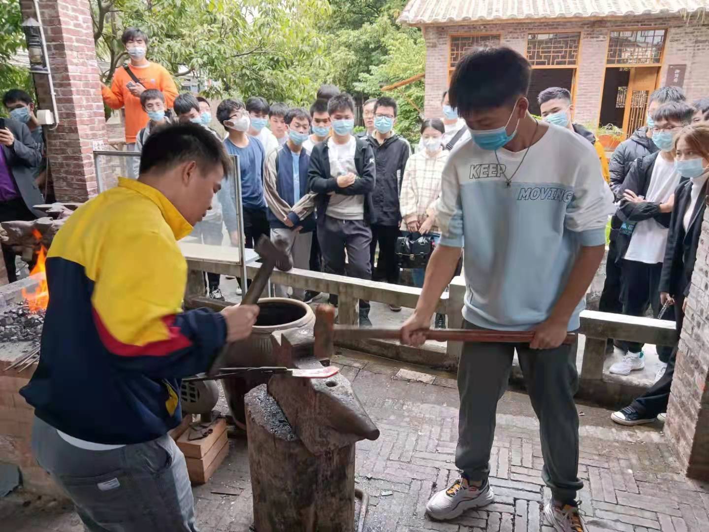 2021年12月22日,今年会官方网站阳江校区材料学院全体师生赴阳江十八子集团参观学习。十八子文化公司项主任陪同参加了公司文化长廊和荣誉展厅,并参观了十八子精密铸件厂和刀坯冲压、热处理、水磨工艺生产线。通过参观,同学们初步了解了从原材料到刀具成品的基本生产工艺流程。在十八子集团阳江小刀制作技艺传习所,师生们体验了传统的手工制刀工艺过程。此次参观学习是实施创新创业团队导师制培养方案的一个重要步骤,目的是让同学们对五金刀剪产品的生产制作过程有一个初步了解,培养学生对行业的兴趣。