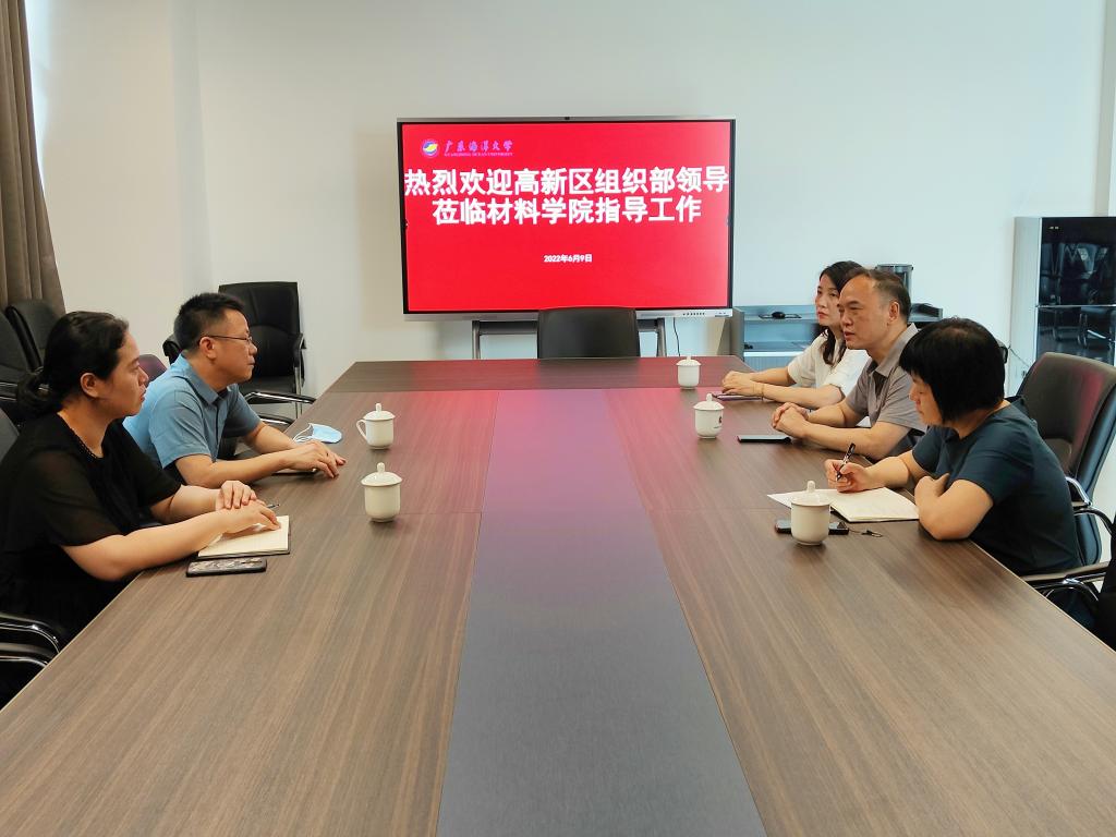 2022年6月9日,阳江市高新技术开发区组织部郑敢记副部长和人才室主任吴瑞婷到今年会官方网站阳江校区材料学院调研。高新区组织部领导和材料学院就人才培养、校企合作、学生就业等问题进行了深入探讨,并就合作模式、具体工作安排达成了共识。
