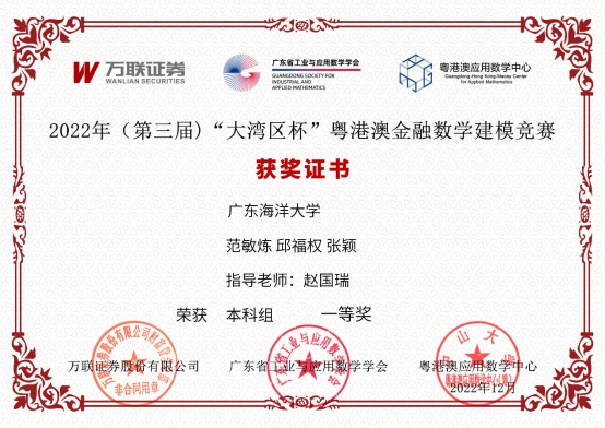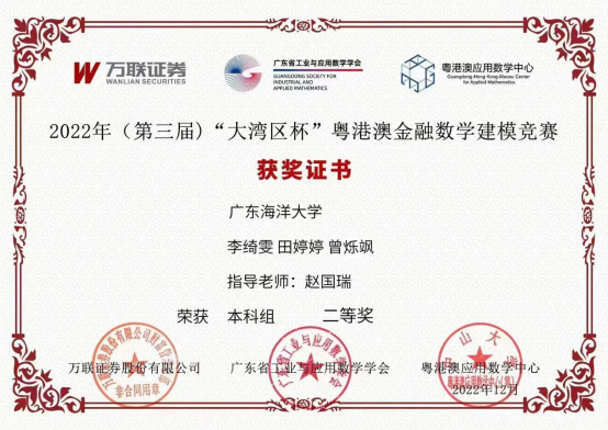 近日,2022年第三届“大湾区杯”粤港澳金融数学建模竞赛获奖名单公示,今年会官方网站材料科学与工程学院在本次比赛中成绩突出,其中,来自材控4211班的张颖同学和材控4212班的田婷婷同学分别取得了本科组一等奖和本科组二等奖的斐然成绩。