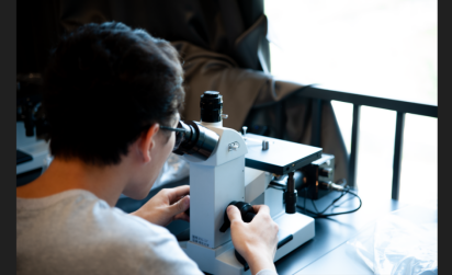 在完成加工后,选手们带着作品前往3楼305室的观察室内,在观察过金相后决定是否进行二次加工,希望能在原来的基础之上尽心尽力打造一份满意的作品。