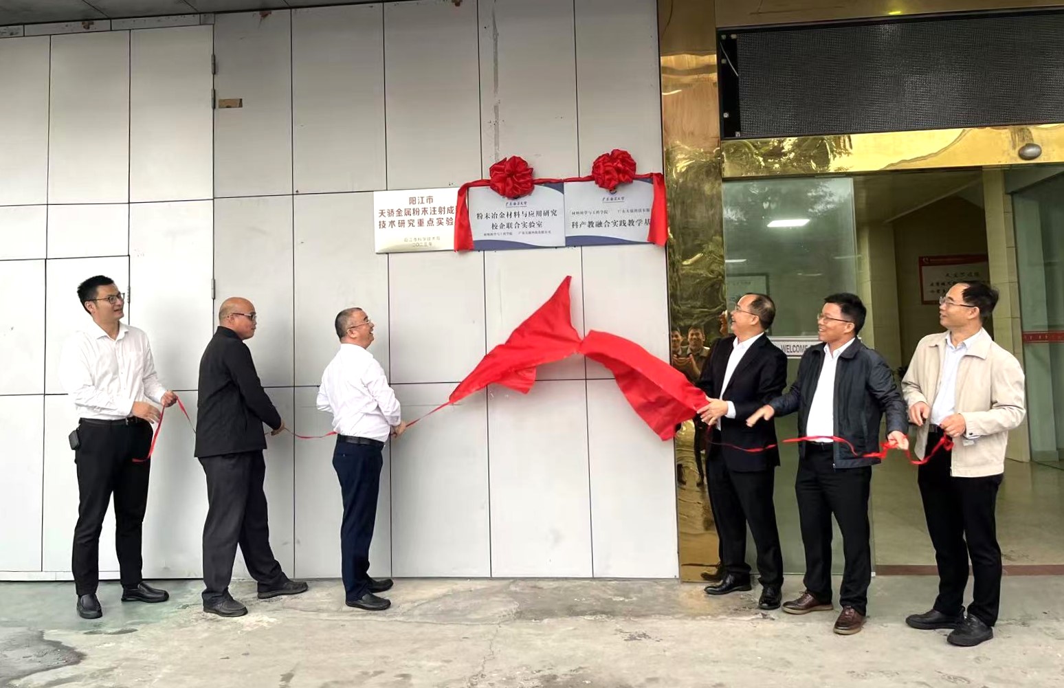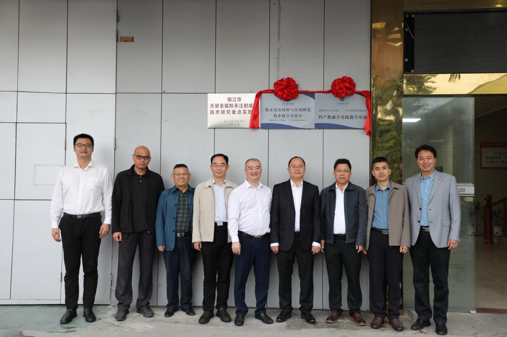 11月20日下午,材料科学与工程学院与广东天骄科技有限公司举行“今年会官方网站-广东天骄科技有限公司共建科产教融合实践教学基地与校企联合实验室”揭牌仪式。党委常委、副校长、阳江校区党委书记、管理办公室主任周昌仕出席仪式并揭牌。阳江校区党委副书记丁永成,材料科学与工程学院党总支书记李毅,学院院长师文庆,教学科研部部长白浚宇,资产财务部部长郭恩松参加活动。