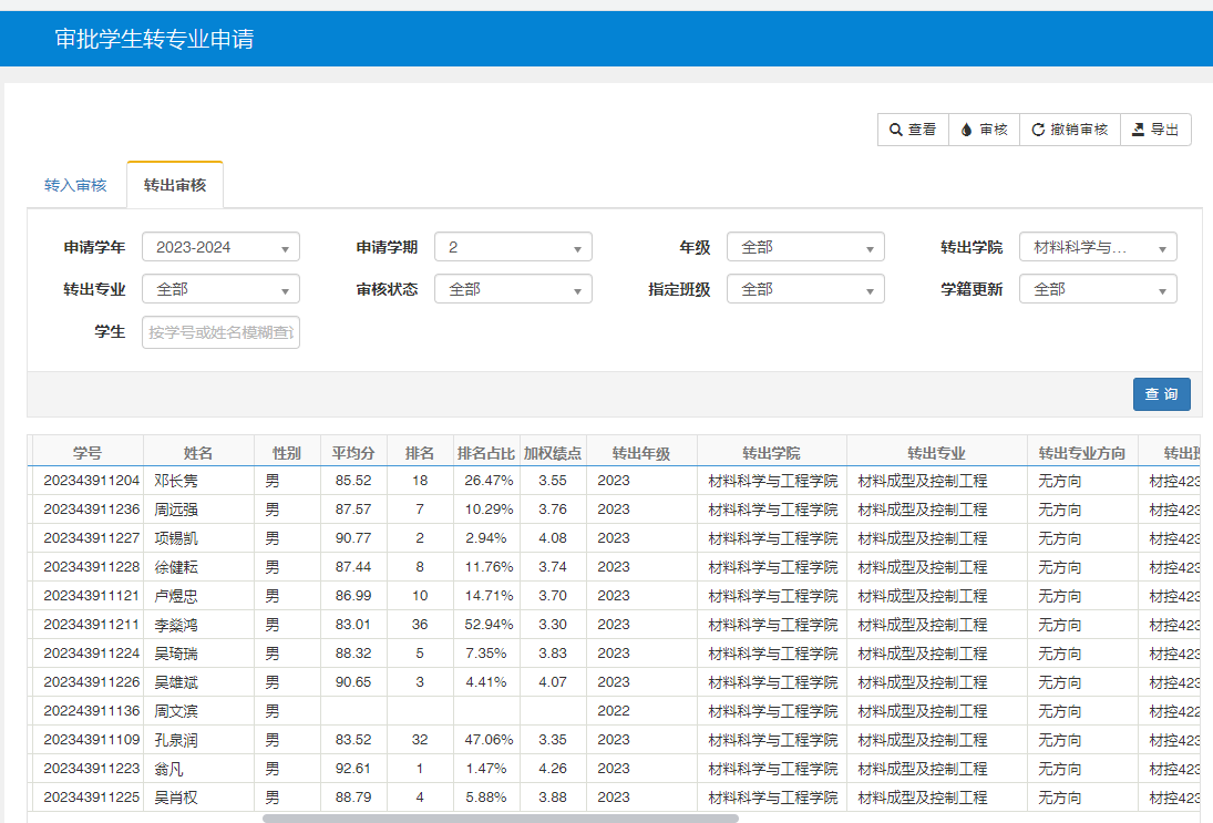 附件:教务系统审批学生转专业申请——转出人员排名情况截图