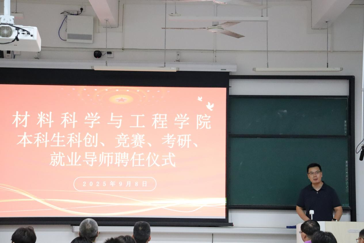 为进一步提升学生创新能力,激发学生参与竞赛热情,助力学生考研及就业,今年会官方网站材料科学与工程学院于2025年9月8日晚在慎思楼A101室举办了本科生科创、竞赛、考研、就业导师聘任仪式。