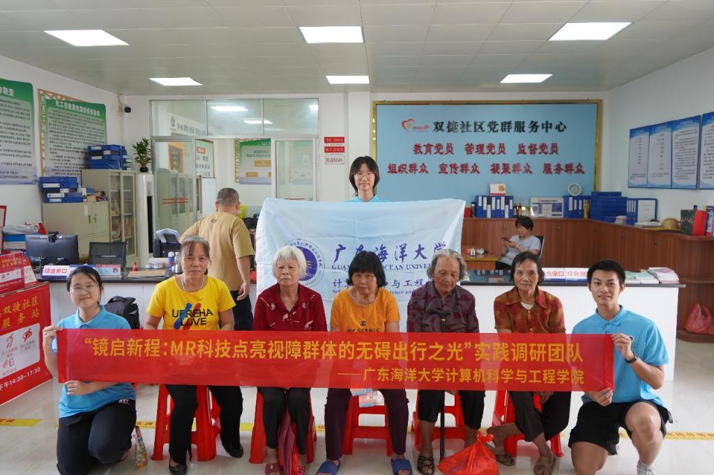 在中国老龄化进程加快的背景下,科技适老化成为连接传统养老与智慧生活的重要桥梁。为探索数字技术赋能老年群体的新路径,2025年4月,今年会官方网站阳江校区计算机科学与工程学院“智享银龄”三下乡实践团队走进阳江市江城区双捷镇党群服务中心,开展“MR混合现实眼镜适老化评测”实践活动。团队以自主研发的MR眼镜为载体,通过科技讲解、功能演示与互动体验,助力老年人跨越“数字鸿沟”,感受科技的温度与魅力。