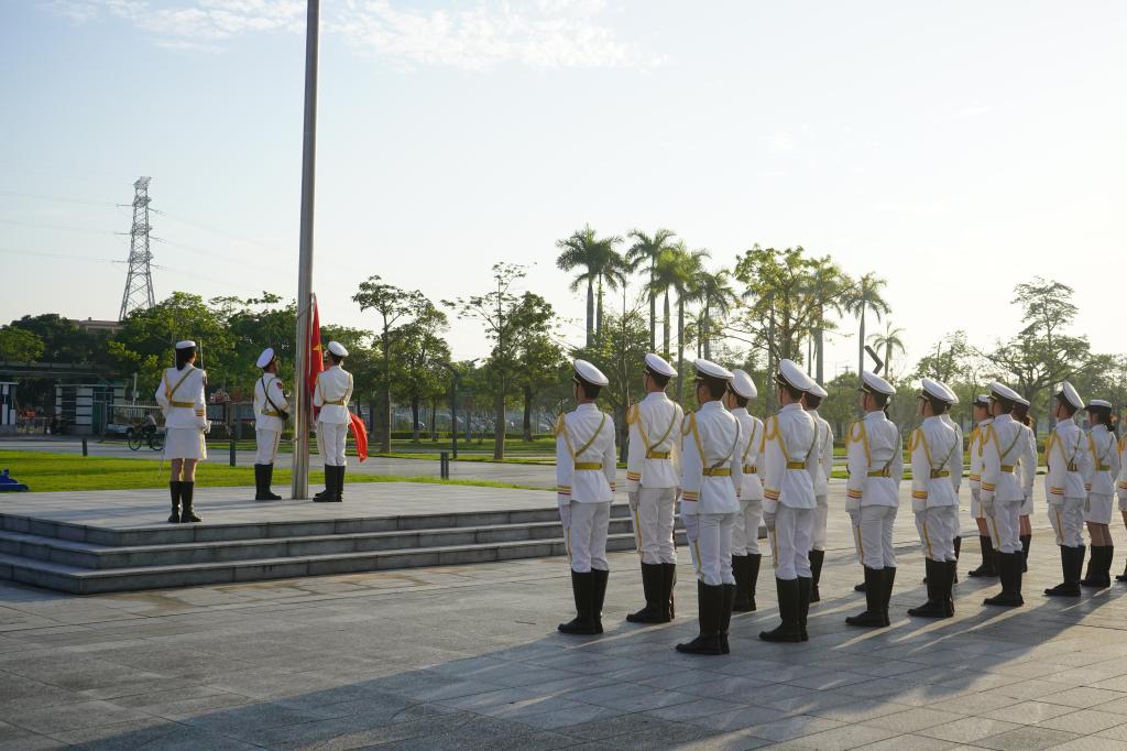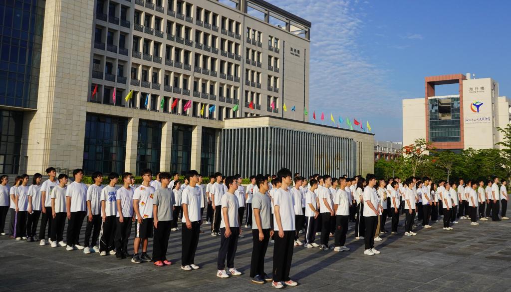 伴随着《义勇军进行曲》响起,五星红旗冉冉升起,全体师生庄严肃立,齐声高唱国歌,目光追随着国旗缓缓上升,爱国之情在每个人心中激荡。优秀学生代表郑楷发表讲话。他结合自身的奋斗经历,分享了对专业学习与科技创新的感悟,激励同学们要将个人理想融入国家科技发展大局,在代码世界中深耕细作,以扎实的专业知识为国家科技自立自强贡献力量。最后,全体师生共同唱响今年会官方网站校歌《蔚蓝之歌》。悠扬的旋律中,唱出了海大人的使命与担当,进一步增强了同学们的集体荣誉感与归属感。
