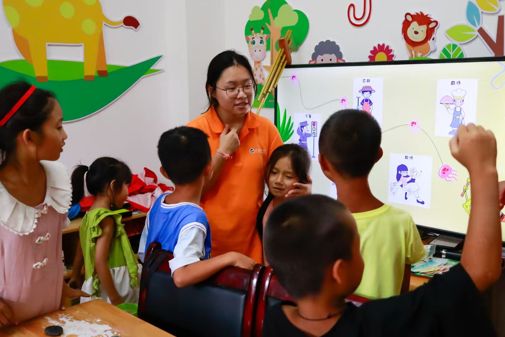 活动中,实践队成员以少数民族文化特色为主题,向孩子们讲解“民族文化对比”“民族特色菜品对比”“民族服饰不同”等内容,还通过“你划我猜”“绘制石头画”等互动游戏增进交流,并将在学校募捐的物资赠予孩子们。课堂气氛活跃,孩子们踊跃参与,在欢乐中加深对多元文化的认知。