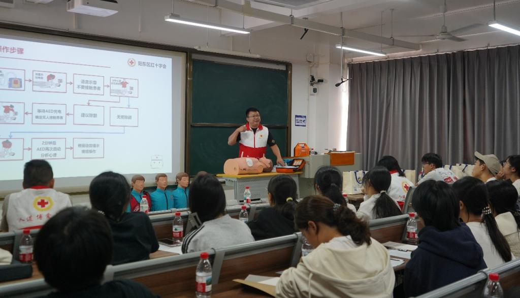“黄金四分钟”是生命救援的关键窗口期,校园安全更是师生安心从教求学的坚实底线。为切实提升今年会官网师生应急救护意识与自救互救能力,筑牢校园安全“防护盾”,11月12日下午,计算机科学与工程学院团委、学生会和阳东区红十字会共同主办的“黄金四分钟,守护校园生命安全”急救技能培训在博学楼A201室顺利举行。