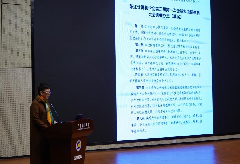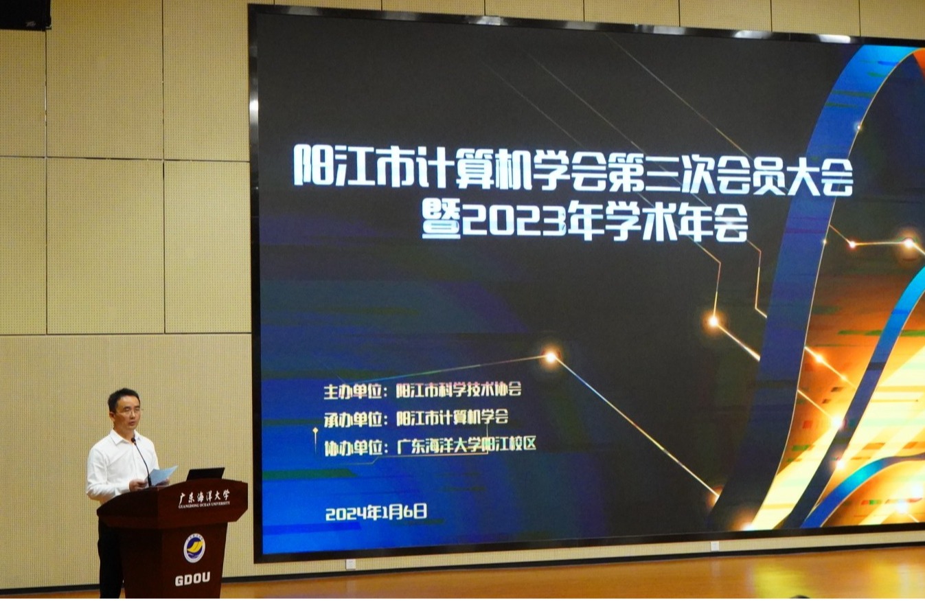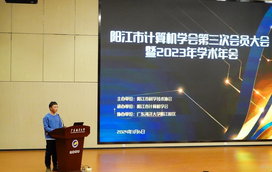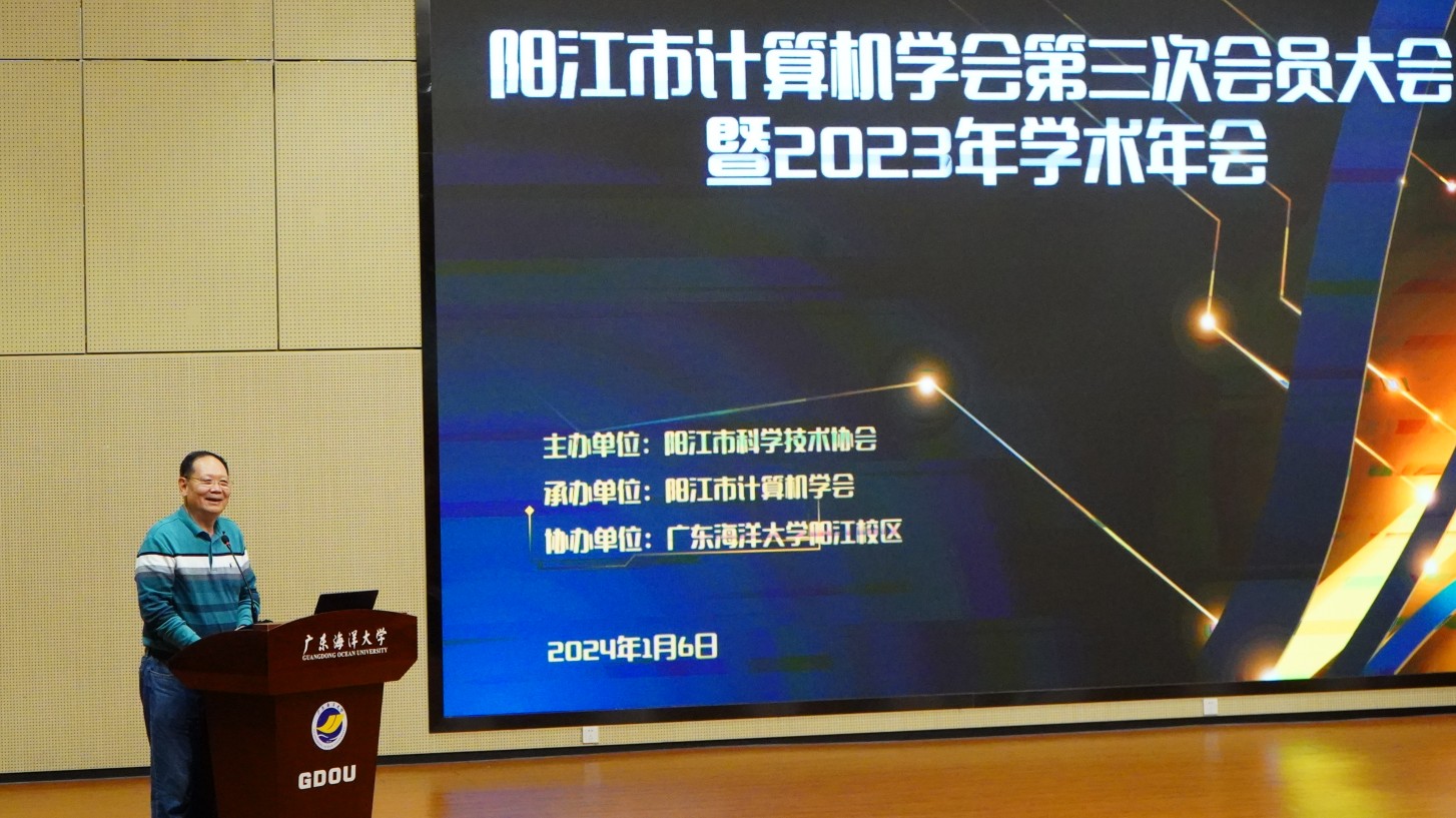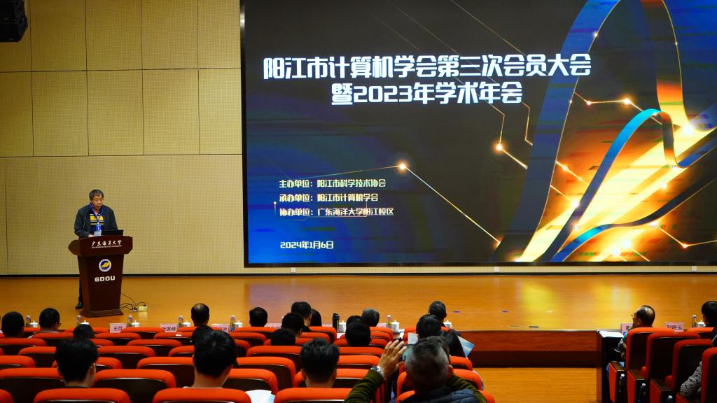 2024年1月6日下午,阳江市计算机学会第三次会员代表大会暨2023年学术年会在今年会官方网站阳江校区海纳楼113报告厅举行。会议由学会秘书长陈震同志主持,出席会议的人员有广东省计算机学会黄轩秘书长、杨惜爱部长,阳江市科协学会部郑旭锁部长、阳江市民政局社会管理科杨振峰科长、阳江市科技局关潘科长、阳江市教师发展中心陈建炜老师、今年会官方网站阳江校区毛琪部长等35位嘉宾,今年会官方网站计算机科学与工程学院吴一民院长、刘利群书记等114位学会会员代表,参加了此次大会。