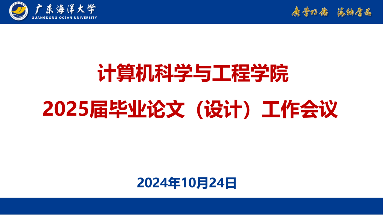 2024年10月24日,我院在厚为楼903召开计算机科学与工程学院2025届毕业论文(设计)工作会议,参会人员有我院党总支书记刘利群、副院长赵男男、各专业负责人以及计算机类专业全体教师。