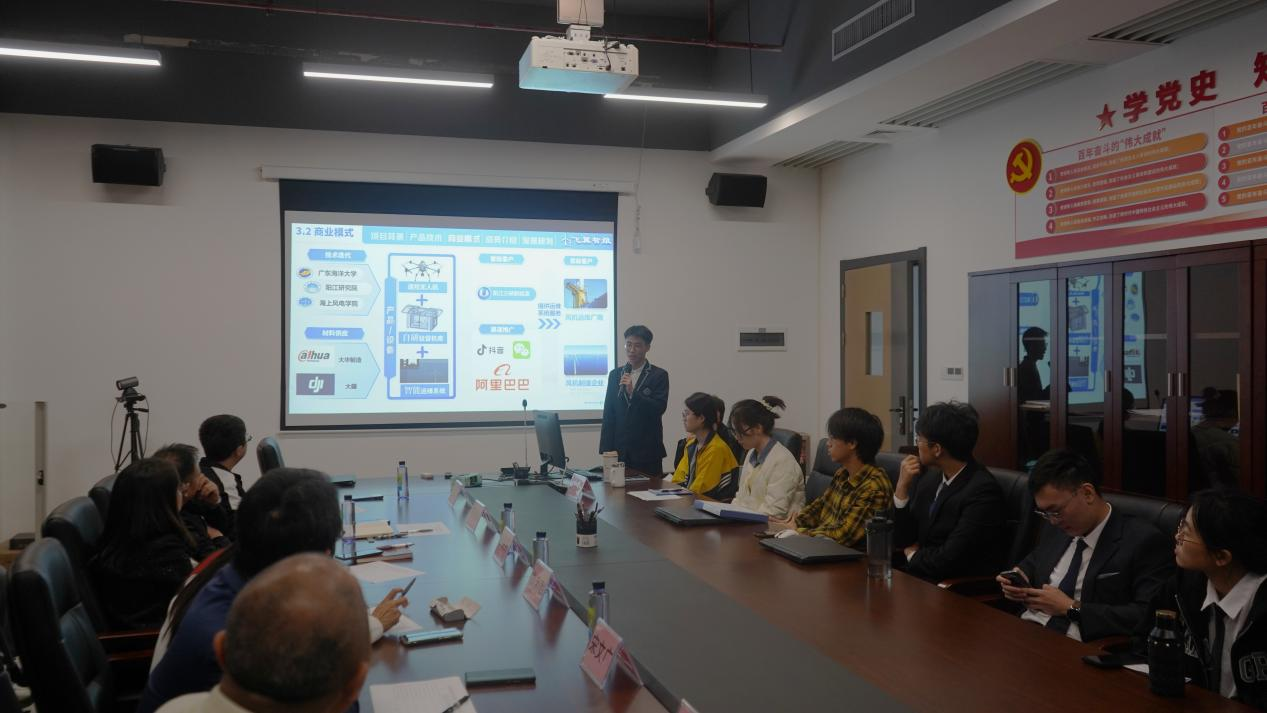 众多学生团队踊跃参与,展现出蓬勃的创新活力,比赛现场各专业的参赛队伍纷纷亮出“绝技”,项目涵盖了海上风电无人机,脑机接口等多元领域,彰显出同学们对时代脉搏的精准感知。评委们用专业视角和实践经验对项目严格把关并提出针对性和建设性建议,助力团队成长。激烈角逐后,大赛评选出飞翼智维-海上风电无人机智能运维系统,国门卫士--基于YOLOv8的染病大豆检测识别系统,守“网”先锋——深水网箱损伤智能检测专家,智绪安伴——脑机接口智能化情绪识别安抚系统共4个项目晋级,脱颖而出的团队将代表学院迈向新征程,继续追逐创新梦想。