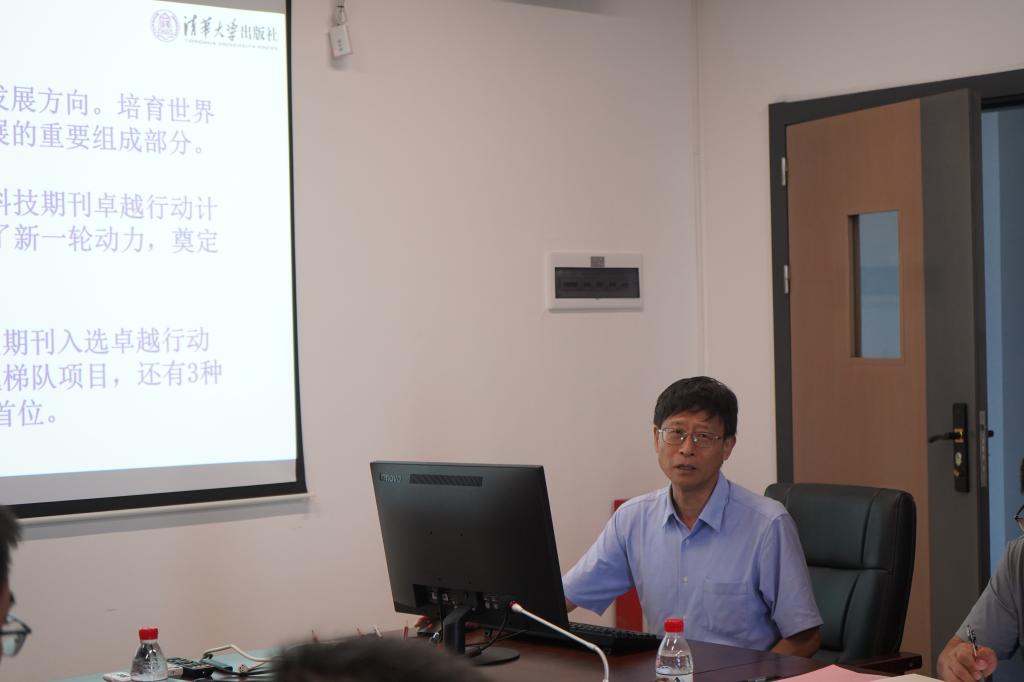刘利群为本次交流会致辞。她对清华大学出版社期刊中心的到访表示热烈欢迎,并简要介绍了学院在学科建设、科研创新及学术平台搭建等方面的基本情况。她指出,清华大学在科技期刊集群化发展领域积累了丰富经验,学校正处于提升学术影响力、推动科研成果转化的关键阶段,期待通过此次交流,双方能在期刊建设、人才培养、平台合作等方面探索更多合作空间。