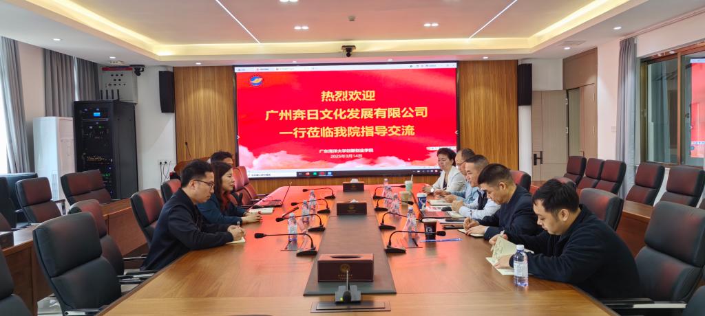 3月14日,创新创业学院特邀广州奔日文化发展有限公司总经理周琤霞一行3人来校指导交流。交流会在海创楼511会议室举行,创新创业学院常务副院长韩卫国、校团委书记袁路、创新创业学院副院长吴明发、副院长龙学敏出席会议,会议由韩卫国主持。