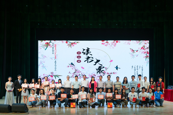 当晚大赛现场接受颁奖的,除了10名读书大赛决赛选手,还有广东省首届图书馆杯“4.23世界读书日”主题海报创意设计大赛、图书馆“读书明星”和图书馆第五届“读者摄影大赛”获奖者。数学与计算机学院江绮晴同学、管理学院梁伊雯同学、数学与计算机学院吴燕璇同学、水产学院肖蓉同学在省图书馆杯海报设计大赛中荣获优秀奖。电子与信息工程学院许圳同学、文学与新闻传播学院郑松间同学、食品科技学院刘嘉婧同学、管理学院叶淑慧同学、海洋工程学院韦泽鑫同学、数学与计算机学院陈振宇同学、数学与计算机学院高善芳同学、外国语学院陈丽莹同学、农学院廖华维同学、电子与信息工程学院李承颖同学荣获2017年度“读书明星”称号。农学院杨梓淇同学和食品科技学院黄凯云同学分别获本届读者摄影大赛手机组和相机组一等奖,数学与计算机学院廖银瑞同学和机械与动力工程学院韩泽西同学获手机组二等奖,中歌艺术学院曾俊宏同学和电子与信息技术学院李文峰同学获相机组二等奖,数学与计算机学院曾远辉同学、文学与新闻传播学院黄瑞茵同学和农学院江浩昭同学获手机组三等奖,机械与动力工程学院刘达钻同学、外国语学院杨洋同学、中歌艺术学院张宇鹏同学获相机组三等奖。