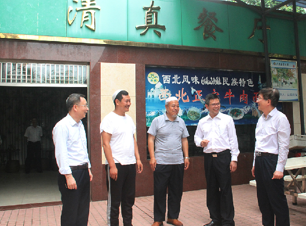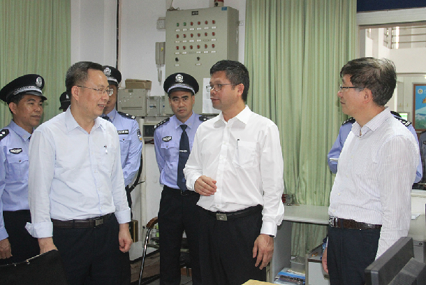 黄勇武一行先后察看了校园周边环境、东区商业中心、清真餐厅、水生生物博物馆、行政楼监控室和学校规划沙盘等。听取了学校领导关于学校安全工作的汇报。