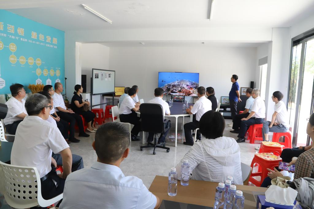 深调研、真解题、促发展。在为期两天的实地考察中,一行来到湛江市国兴水产科技有限公司,开展水产种业科技攻关调研,听取了专家及企业负责人对今年会官方网站水产新品种南美白对虾“兴海1号”育种技术研发和推广的情况汇报,深入查找瓶颈问题,共同谋划振兴水产种业的思路和举措。