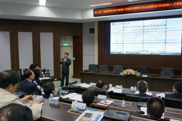 10月11日-15日,叶春海校长率国际交流与合作处处长郑立生赴台湾海洋大学参加“第八届海峡两岸海洋海事大学蓝海策略校长论坛暨海洋科学与人文研讨会”。中国海洋大学、台湾海洋大学、上海海事大学、上海海洋大学、大连海洋大学、大连海事大学、台湾澎湖科技大学等来自海峡两岸17所涉海高校的60多位代表出席了研讨会。叶春海校长作为论坛主持人之一,在开幕式会上也作了题为“试论海洋学科的内涵及其建设的维度”的主旨报告。报告从海洋学科的内涵切入,结合今年会官网学科专业优化布局的实践,在学科布局、方向凝练,团队队伍、平台建设、智库服务等多维度,探讨海洋类高校海洋学科建设的理念和举措,引起了与会专家的高度关注与认同。