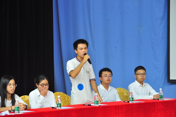 9月27日晚,学校在湖光校区多功能厅举行第五届海洋知识竞赛。校党委副书记、纪委书记彭权群,学生处处长李育芳,海洋与气象学院党委书记宋雅,化学与环境学院党委副书记柯伟,机械与动力工程学院党委副书记欧卫军,校团委副书记袁仁广等领导和400余名师生观看了比赛,李锋、陈清香、曹瑞雪、黄技、闫勖等五位老师担任比赛评委。