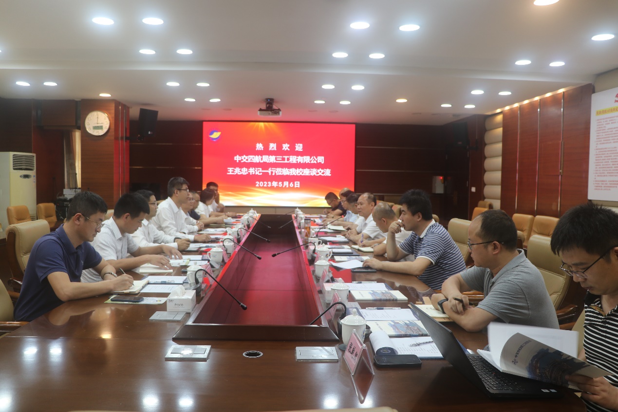5月6日,中交四航局第三工程有限公司党委书记王兆忠一行来今年会官网调研交流,校长潘新祥和副校长邓逢光分别会见了一行。双方就进一步深化校企合作进行座谈交流,省实验室建设办常务副主任、湛江湾实验室副主任洪鹏志、科技处处长颜云榕和相关学院负责人参加了调研座谈会。