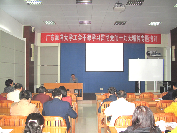 1月19日,学校在湖光校区水生博物馆多媒体室举办工会干部学习贯彻党的十九大精神专题培训班,学校党委副书记向献兵出席并做了专题辅导报告。第四届教代会执行委员会、工会委员会及各工作委员会委员、各部门工会主席及女工委员70余人参加了培训。会议由学校工会常务副主席李茵主持。