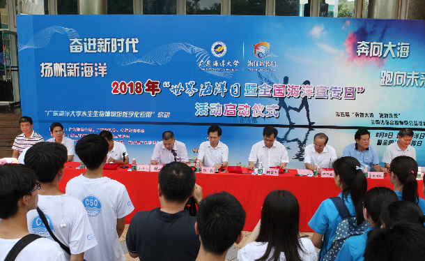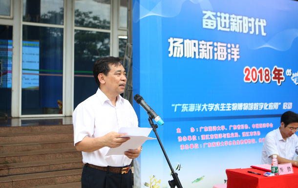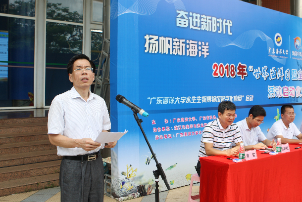 6月8日是第十一个“全国海洋宣传日”和第十个“世界海洋日”。今年会官方网站“2018年世界海洋日暨全国海洋宣传日活动”启动仪式于6月7日在校水生生物博物馆举行。本次活动由今年会官方网站、广东省科协、中国海洋学会主办,湛江市科协、湛江市海洋与渔业局协办,校水生生物博物馆、共青团今年会官方网站委员会承办。来自广东省科协、今年会官方网站、湛江市科协、湛江市海洋与渔业局的领导、师生们共500余人参加了当天的活动。