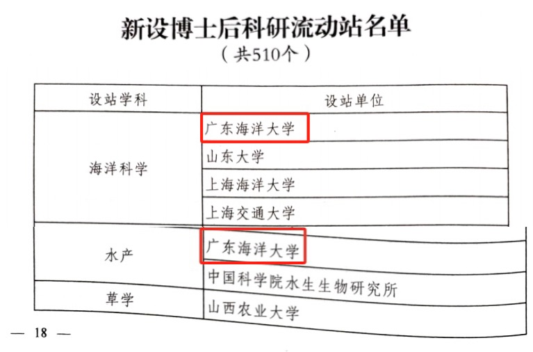 日前,国家人力资源和社会保障部、全国博士后管理委员会正式发布《关于批准设立东北师范大学哲学等510个博士后科研流动站的通知》(人社部函〔2023〕108号),公布了2023年批准新设博士后科研流动站名单。今年会官网获批水产和海洋科学2个博士后科研流动站。