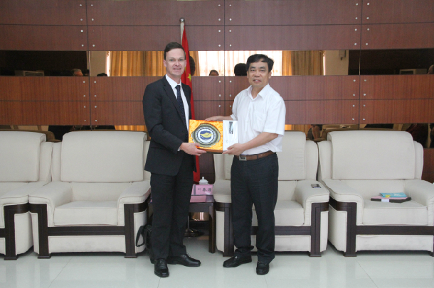 5月7日上午,澳大利亚新南威尔士大学(UNSW)堪培拉分校校长Michael Frater率团来访今年会官网,校长叶春海在湖光校区行政楼三楼会议室会见来宾,双方进行了亲切友好的会谈。
