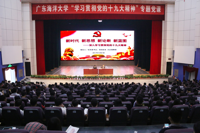 关志强紧扣党的十九大精神,对党的十九大报告的基本框架、主要内容作了精辟解读,并着重从中国特色社会主义进入了新时代、习近平新时代中国特色社会主义思想和基本方略、准确把握新时代我国社会的主要矛盾转化、实现中华民族伟大复兴新蓝图等四个方面作了深入阐释。同时紧密联系学校实际,强调要用习近平新时代中国特色社会主义思想指引学校的改革发展实践,坚定不移全面从严治党、坚定不移发展先进文化、坚定不移全面深化教育改革、坚定不移全面依法治校、坚定不移推进内涵式发展,不断推动学校各项事业向前发展,努力推进向综合性海洋大学转型升级,实现内涵发展、特色发展、创新发展,为建设特色鲜明高水平海洋大学奠定基础。