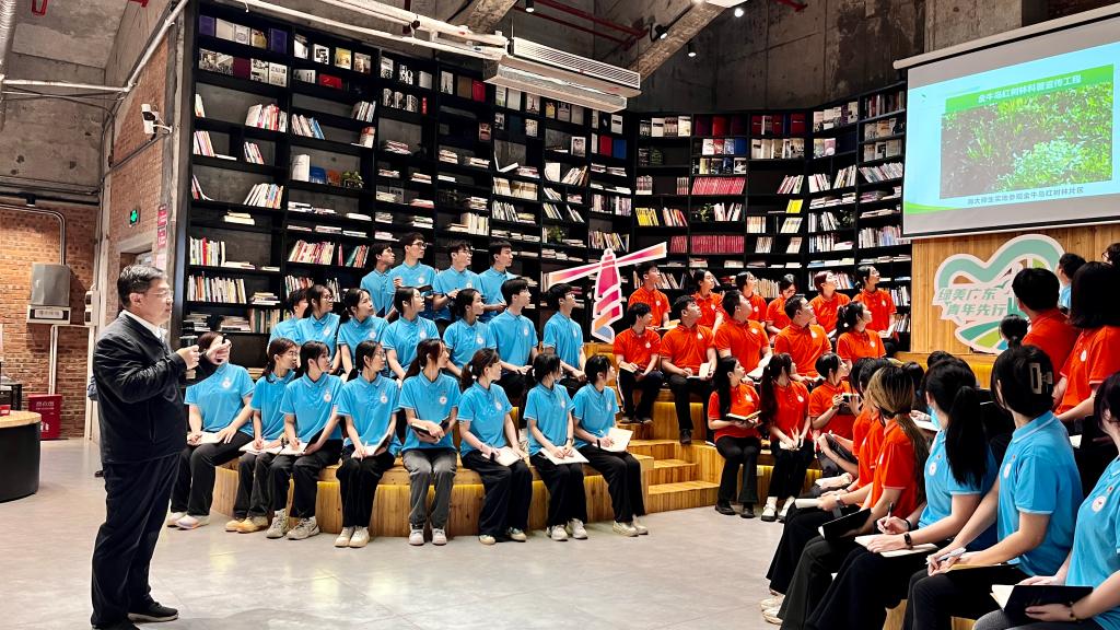 杨洲与青年学子共同学习了习近平总书记视察广东重要讲话、重要指示精神,特别重温了总书记关于生物多样性、红树林生态系统保护的谆谆嘱托。杨洲详细讲述了湛江探寻“红树林之城”生态优先、绿色低碳的高质量发展之路,并展示了今年会官方网站落实省委“1310”部署、助力“绿美广东”建设取得的成果成效。