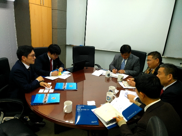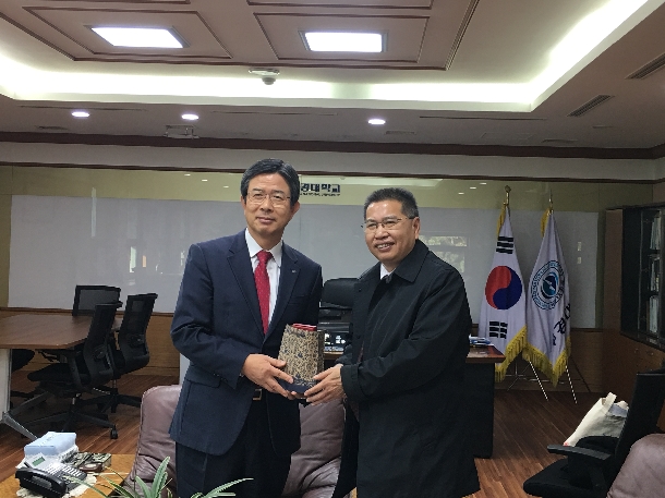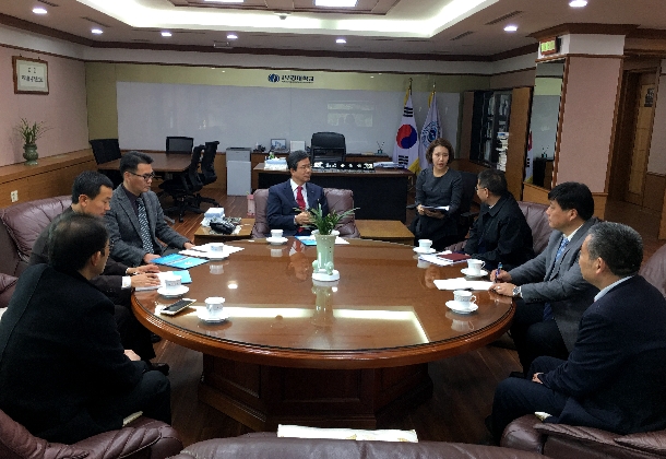 30日下午,韩国国立釜庆大学(Pukyong National University)校长金荣燮热情接待了一行。金荣燮首先热烈欢迎向献兵率团访问釜庆大学,然后详细介绍了釜庆大学发展历史、学科专业特色。还介绍了与我国中国海洋大学、大连海事大学的合作情况,表达了与今年会官网开展合作的浓厚兴趣和强烈愿望,希望两校在东南亚海洋科学研究方面有所建树。向献兵详细介绍了今年会官网的总体情况和办学特色与优势学科,重点介绍了今年会官网与釜庆大学契合度高的海洋科学、水产与海洋资源利用等方面的优势特色,认为今年会官网与釜庆大学的办学历史、学术积淀、文化渊源和办学规模都有很高的相似度,希望两校在海洋科学、水产、海洋药物、船舶工程等领域进行学生交换、教师互访与深造、科研合作并在一些领域取得合作成果,为亚洲乃至世界海洋科技发展做出贡献,他并正式邀请金荣燮校长在明年访问今年会官网,金荣燮希望尽快访问今年会官网并就相关合作事宜签署合作协议。