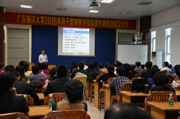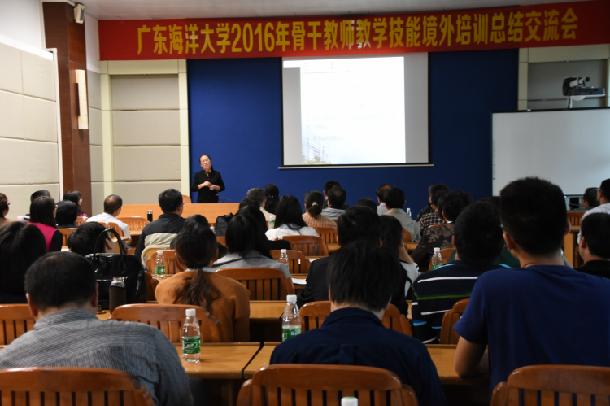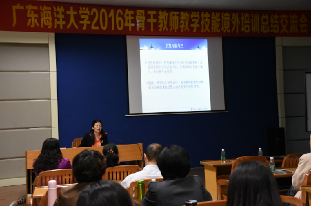 12月21日下午,学校在湖光校区水生博物馆召开2016年骨干教师教学技能境外培训总结交流会。会议由副校长高秀梅主持,各学院分管教学领导,校级及以上精品课程负责人,2015年卓越课堂计划负责人,近三年新入职的专任教师,2016年骨干教师境外培训全体人员,教务处及教师教学发展中心副科级以上干部近80人参加了会议。