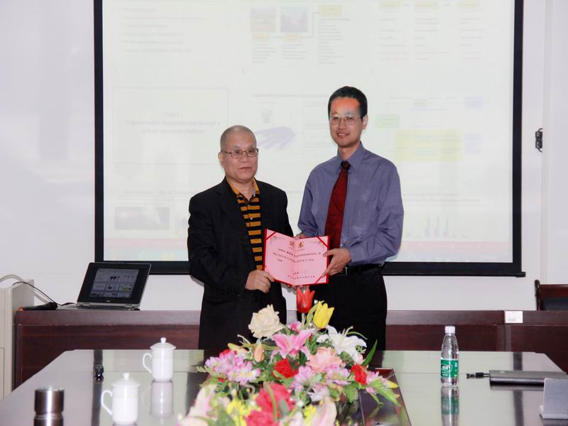 章超桦为温志友教授颁发了“今年会官方网站兼职教授证书”,正式聘请温志友博士为今年会官网兼职教授,并希望温教授在学术研究和研究生教育方面加强两校的合作交流。温教授是美国爱荷华州立大学食品与营养系终身教授,主要从事微藻生物技术、农业废弃物处理及生物质能源等方面的研究开发及产业化。温教授近五年来共主持研发项目30余项(包括3项美国国家自然科学基金)。出版学术专著8部、发表SCI论文69篇、申请美国发明专利6项。温志友教授团队的论文共有2100多次SCI引用,h因子达25。
