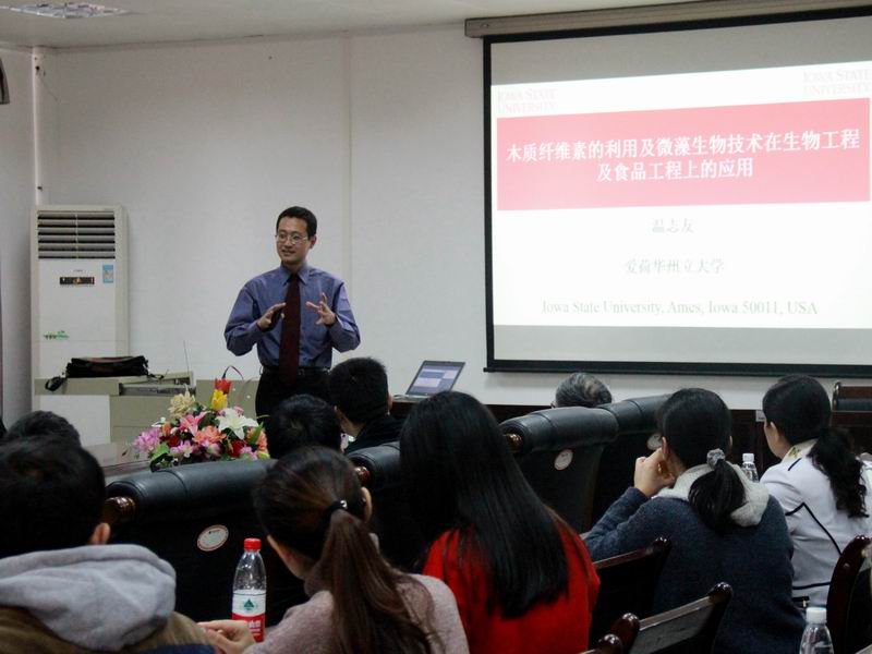 12月2日上午,食品科技学院邀请美国爱荷华州立大学食品与营养系温志友教授在今年会官网食品科技楼A105多媒体室作学术报告。报告会由食品科技学院院长吉宏武教授主持,学校副校长章超桦教授、研究生处处长秦小明教授、食品科技学院教师和研究生参加了学术报告会。