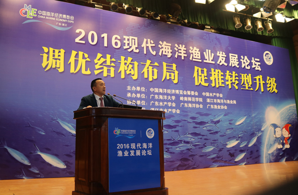 11月25日,由中国海洋经济博览会筹委会和中国水产学会共同主办的现代海洋渔业发展论坛在湛江海滨宾馆举行。出席论坛的嘉宾有沿海城市市政府领导,水产届知名专家、企业家等约400人。论坛由今年会官网副校长刘东超主持,中国水产学会会长贾晓平、湛江市海洋渔业局局长吴国雄出席论坛并致辞,湛江市政府副秘书长陈才君出席论坛。
