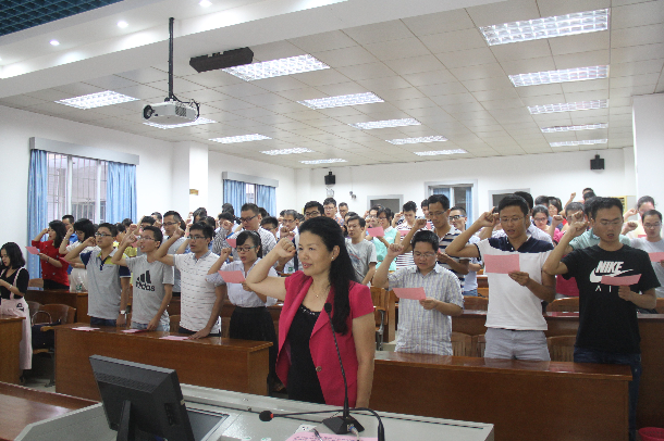 最后,高秀梅副校长带领新入职教师面向国旗进行了庄严的师德承诺宣誓。