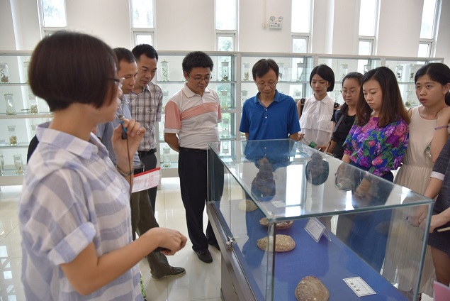 李育芳部(处)长陪同仲恺农业工程学院来宾参观水生生物博物馆