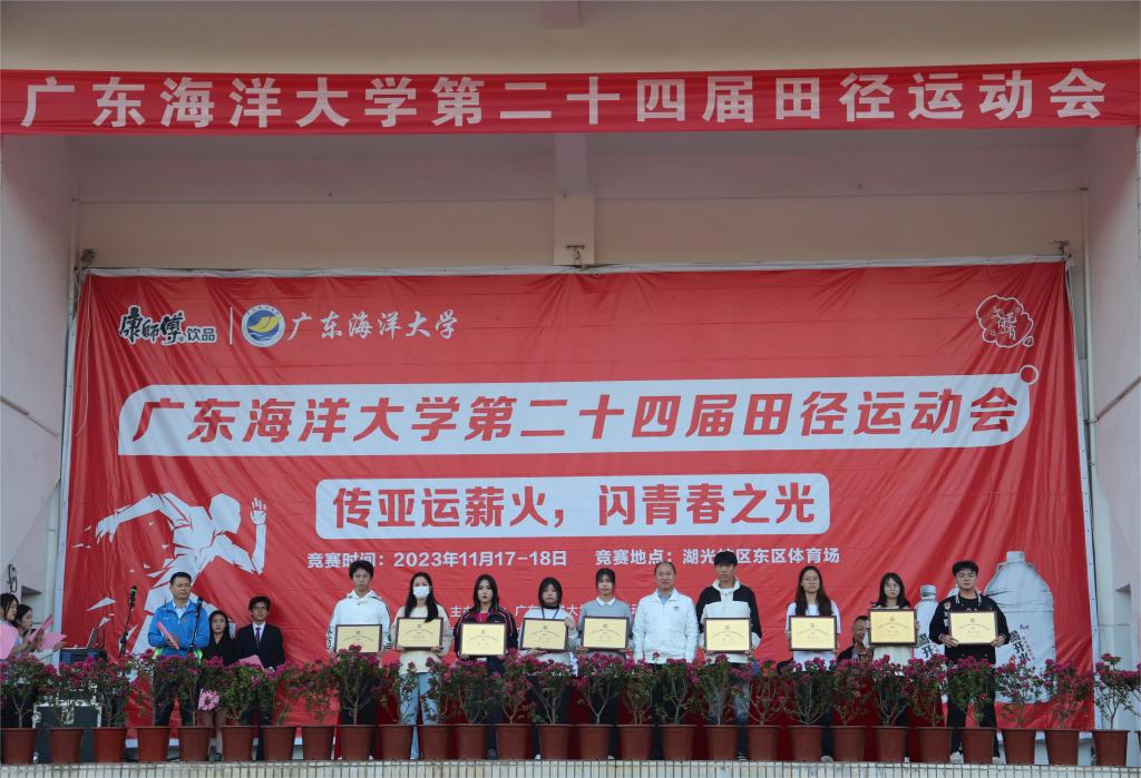 闭幕式上,学校领导分别为获奖代表团队颁奖。后勤工会、体育与休闲学院工会、机关工会、电子与信息工程学院工会、管理学院工会、中歌艺术学院工会、机械工程学院工会、水产学院工会分别荣获教工组团体前八名;体育与休闲学院、管理学院、阳江校区、经济学院、海洋工程与能源学院、水产学院、滨海农业学院、电子与信息工程学院、船舶与海运学院分别荣获学生组团体前八名;经济学院、船舶与海运学院学生代表队荣获“体育道德风尚奖”;滨海农业学院和管理学院学生代表队荣获“优秀组织奖”。