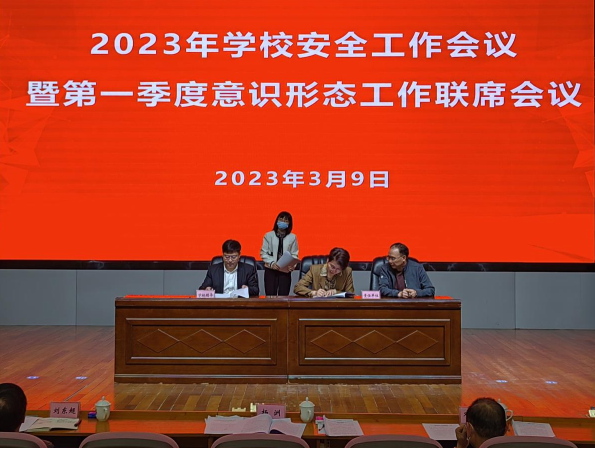 为深入学习贯彻党的二十大精神和习近平总书记关于总体国家安全观重要论述,贯彻落实省委书记黄坤明莅校调研指示精神,更好统筹发展与安全,3月9日上午,学校在湖光校区广学楼多功能厅召开2023年安全工作会议暨第一季度意识形态工作联席会,传达省委教育工委、省教育厅有关文件精神,总结2022年学校安全工作,部署2023年安全工作重点。学校党委书记杨洲,党委常委、副校长刘东超、邓逢光,各单位(部门)主要负责人、各二级党组织书记、各学院院长参加会议。