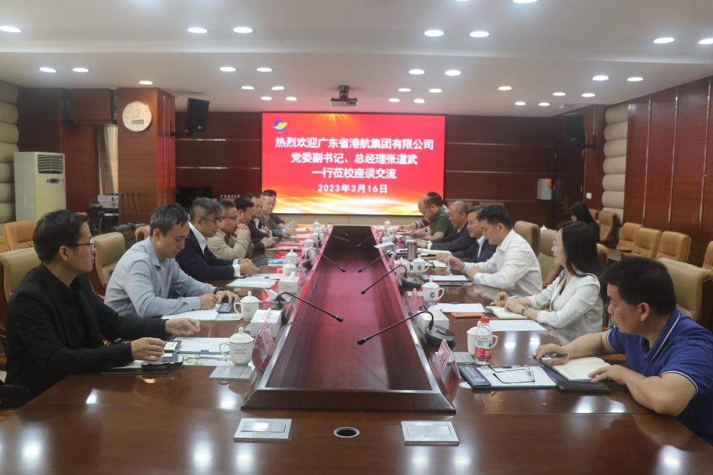 3月16日上午,广东省港航集团有限公司党委副书记、总经理张道武一行8人来校交流座谈,校长潘新祥,相关单位、学院负责人参加座谈会。