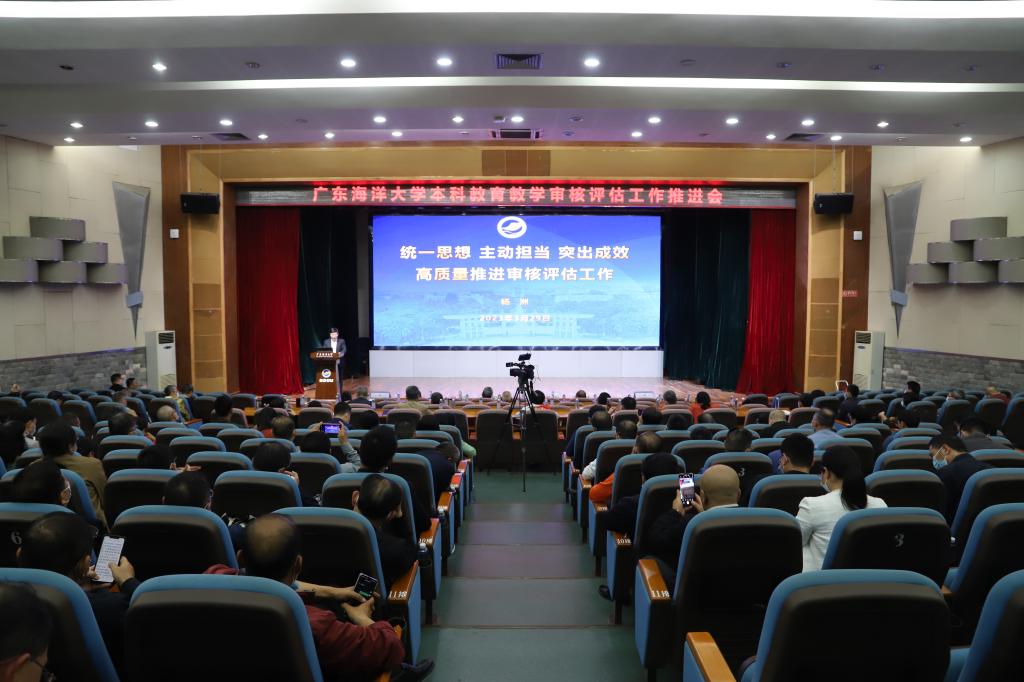 3月29日下午,学校在广学楼多功能厅召开本科教育教学审核评估工作推进会。学校领导、全体处级干部、学校评建办及各专项工作组成员、各单位(部门)相关工作人员共300余人参加会议,阳江校区领导和相关人员通过视频连线参会。会议由学校评建办主任、副校长宁凌主持。