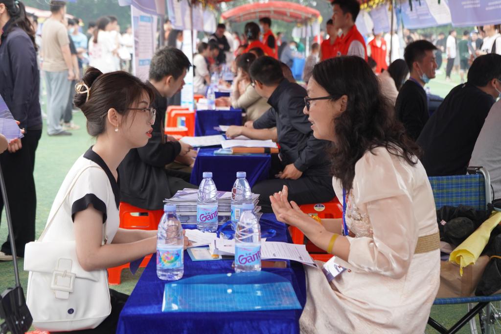 线上招聘+线下洽谈有效提高了毕业生与用人单位交流的效率。在招聘会开始前,招聘单位与毕业生分别在招聘平台上注册信息,进行前期匹配、初步对接。毕业生凭自动生成的电子二维码分时段参加招聘会,与用人单位面对面洽谈签约。此外,为给部分对未来职业规划仍然比较迷茫的同学提供指引,活动现场设置了就业指导和就业政策宣传专区,邀请了专家开展政策宣讲和就业创业指导。现场还设立了直播间,企事业单位通过现场直播、探企直播等形式进行带岗宣讲,企业人力资源负责人直观介绍企业环境、岗位需求、福利待遇等情况,求职者可参加现场直播互动,并可以通过直播中的投递简历链接在招聘平台上查看岗位、投递简历,为高校毕业生开启求职的绿色通道。