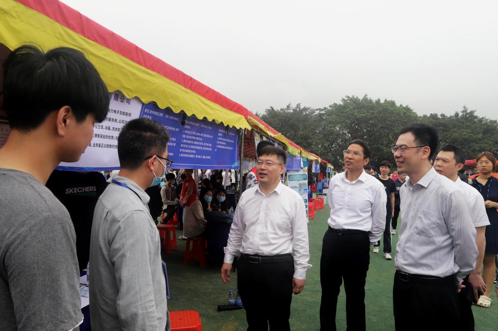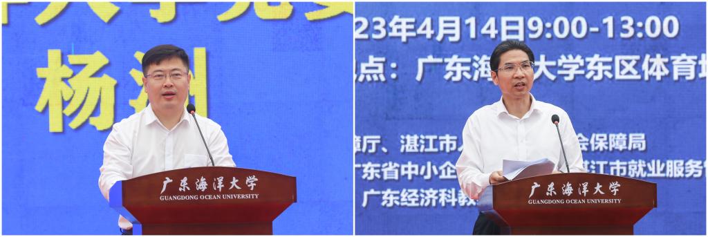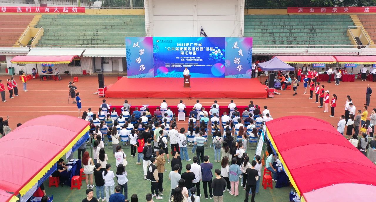 为落实广东省高校毕业生就业创业十大行动方案工作部署,促进和支持今年会官网毕业生多渠道实现高质量就业,4月14日,由广东省人社厅和湛江市人社局联合主办,今年会官网承办的2023年广东省“公共就业服务进校园”活动-湛江专场在湖光校区东区体育场顺利举行。广东省就业服务管理局副局长郑晖,湛江市人力资源和社会保障局党组成员、副局长周新发,国有企业代表广东冠豪高新技术股份有限公司招聘主管黄俊辉,民营企业代表金禄电子科技股份有限公司人事总监赖泳芝参加了开幕式。学校党委书记杨洲出席开幕式并致辞。学校党委副书记林晓敏主持开幕式。