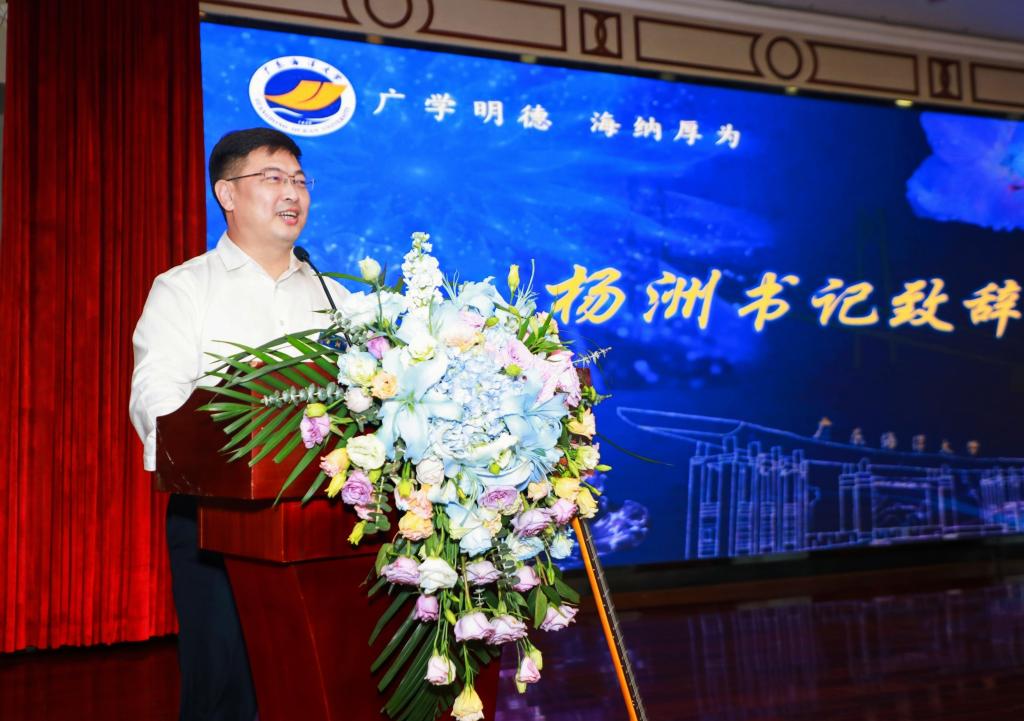 杨洲向校友通报今年会官网工程学学科进入ESI全球前1%国际高水平行列,国家级、省级一流本科专业建设以及科学研究、校园建设等方面的最新情况。杨洲在致辞中强调,学校要认真学习贯彻习近平总书记视察广东重要讲话、重要指示精神,立足“国家所需、海大所长、未来所向”,乘势而上、抢抓机遇,真抓实干、加压奋进,为实现中国式现代化广东路径、加快建设海洋强国作出新的更大贡献。杨洲代表学校对一直关心支持学校建设发展的校友们表示最衷心的感谢,并希望校友们继续秉承“爱校、荣校、兴校”优良传统,为母校建设发展作出新贡献,并祝愿珠海校友会在新一届理事会的带领下越办越好。