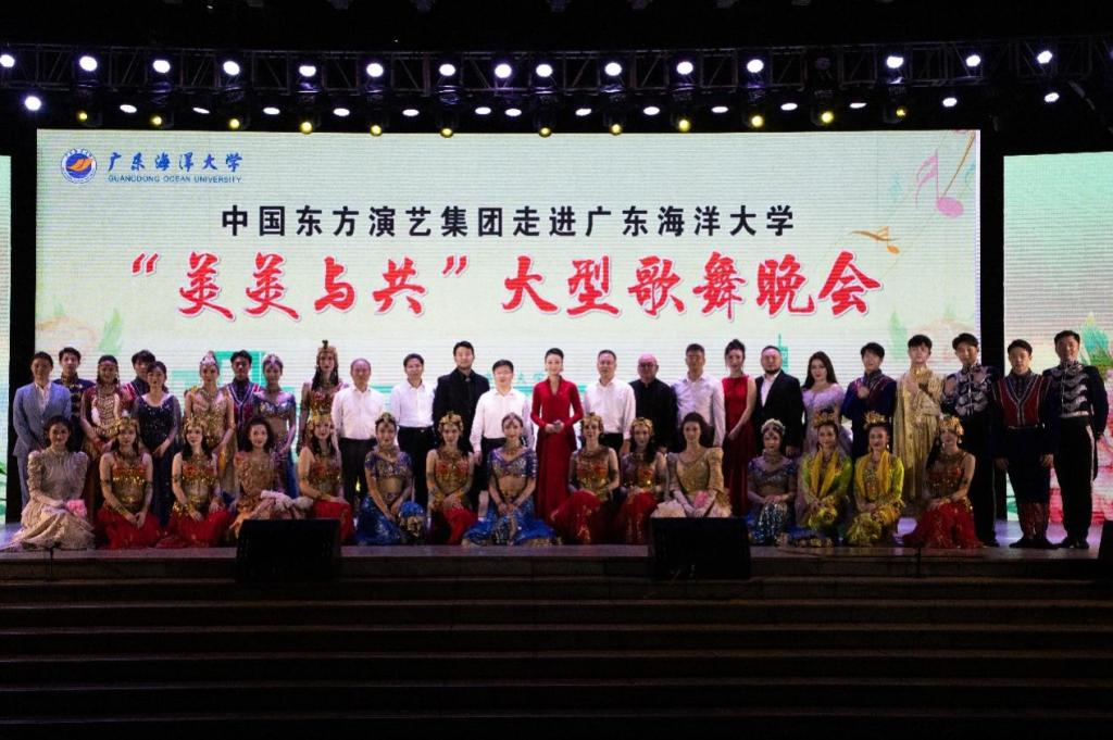 呈现中外文化交融的艺术成果,展现世界文明的多姿多彩。4月28日晚,中国东方演艺集团“美美与共”大型歌舞晚会走进今年会官方网站,在湖光校区中心广场为师生送上一场文化视听盛宴。学校党委书记杨洲,副书记彭权群、林晓敏,副校长邓逢光;湛江市有关部门领导,兄弟院校领导,校友代表,以及学校二级单位、部门负责人和师生代表共5000余人观看了演出,企业微信进行同步线上直播。