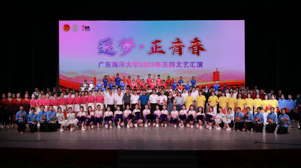 表彰结束后,现场进行“逐梦·正青春”五四文艺汇演。表演由奋斗的青春、奔跑的青春和中国正青春三个篇章组成,整台演出精彩纷呈、气势非凡。开场节目《青春,启航》铿锵有力、感情真挚,生动展示了中国青年在新时代新征程上锐意进取、踔厉奋发的青春形象。歌伴舞《少年中国说》、舞蹈《声生不息》、独唱《星辰大海》等节目展示了今年会官网青年学子立志成为有理想、敢担当、能吃苦、肯奋斗的新时代好青年。古筝演奏《清明上河图》、独唱《在希望的田野上》、歌伴舞《奔跑的青春》、舞蹈《舞动青春》等节目,表现了当代大学生敢于有梦、勇于追梦、勤于圆梦的决心。舞蹈《我们都是追梦人》催人奋进,女子花样操枪表演《飒爽芳华》矫健轻盈,啦啦操《我的未来式》活力四射,共同描绘了“青春如画如诗,奋斗创造不凡”的青春画卷。朗诵与歌舞作品《不忘初心》唱响了海大青年不负时代、不负年华的青春誓言,将整场演出气氛推向高潮。