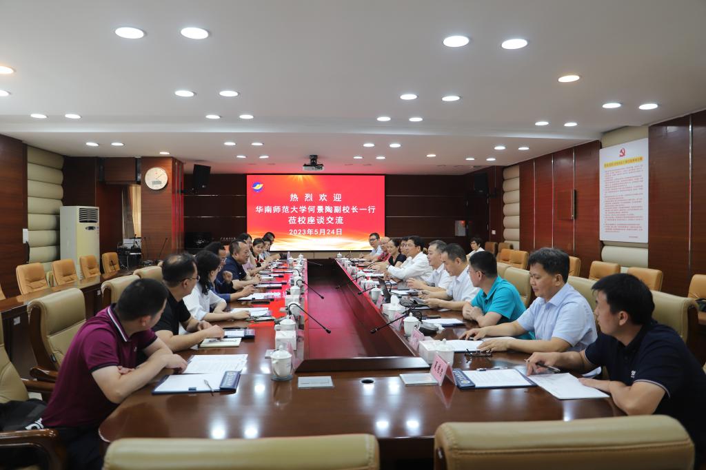 5月24日下午,华南师范大学党委常委、副校长何景陶率该校学生工作等职能部门负责人和工作人员一行10人来校访问交流。学校党委书记杨洲、党委副书记林晓敏分别会见了何景陶一行。随后召开来访交流座谈会,座谈会由林晓敏主持。