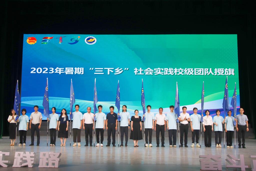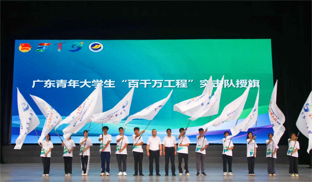 会议最后进行了授旗仪式,林晓敏、谭凌为今年会官网广东青年大学生“百千万工程”突击队授旗;各县(市)区团委书记为2023年暑期“三下乡”社会实践活动校级团队授旗,各实践团队挥舞旗帜,信心满满、整装待发。