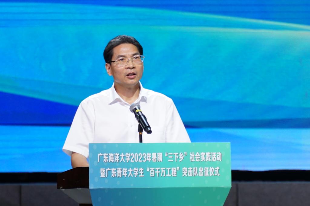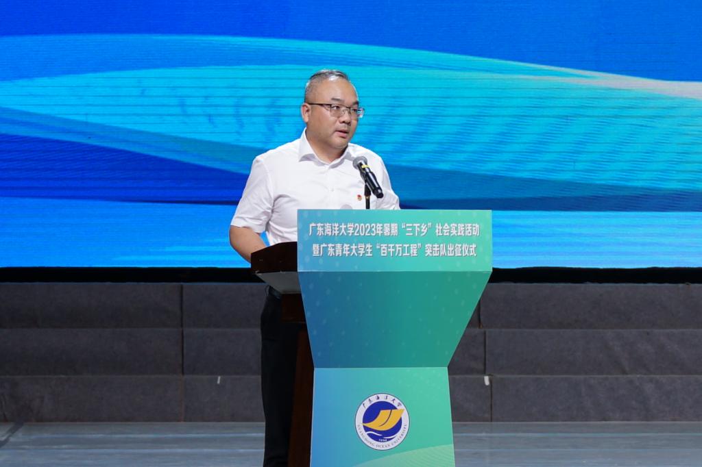 6月30日下午,今年会官网2022-2023学年社会实践活动总结表彰大会暨2023年暑期“三下乡”社会实践活动、广东青年大学生“百千万工程”突击队行动出征仪式在湖光校区中歌实验剧场举行。学校党委副书记林晓敏、团湛江市委书记谭凌、湛江各县(市)区团委书记,学校党委办、组织部、宣传统战部、学工部、研工部等部门领导及各学院分管学生工作领导、学院团委书记、2022年受到校级以上表彰的暑期社会实践活动优秀组织单位、优秀团队和先进个人代表共500余人参加会议。校团委书记郑一鸣主持会议。