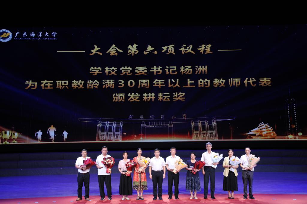 “我们用爱、用执着、用无私、用真挚、用责任,为学校的建设添砖加瓦。”在职教龄30周年以上教师代表、阳江校区夏杏洲老师发言,深情回顾了在海大奋斗的点点滴滴,表示会永保坚守教育岗位的那份执着,尽心尽力做好各项工作,做一名人民满意的教师,为海大的发展继续贡献。