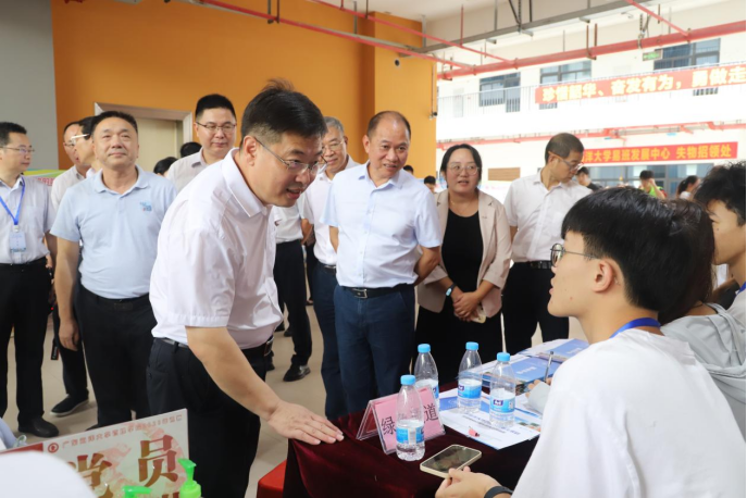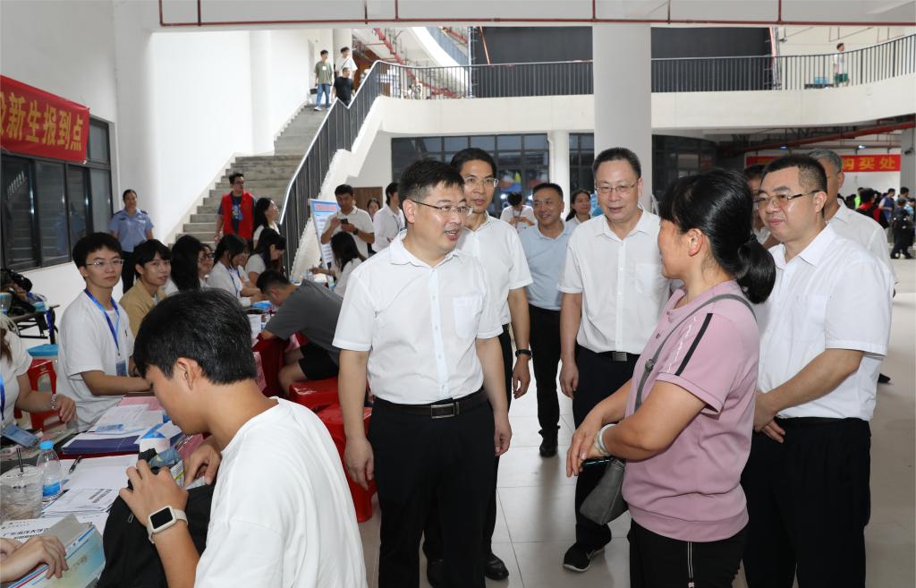 学校领导到迎新现场看望慰问新生及其家长和各单位部门工作人员