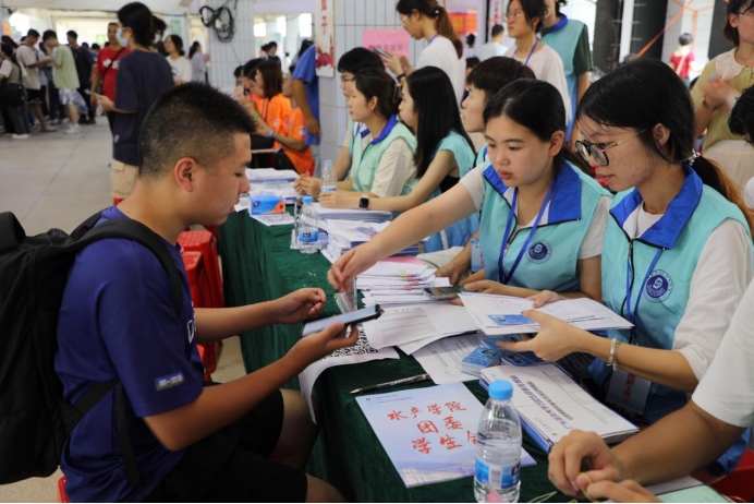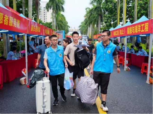此次迎新“新”意浓浓、心意满满。学校今年接待新生期间全面开放校园,允许家长和亲友自由进入校园,感受美丽的校园环境和良好的育人氛围。为迎接新生来校报到,学校做足了“功课”。学校党委高度重视、提前谋划、科学安排,制定迎新工作实施方案。学校提前对校园环境和学生宿舍进行了改造优化。在机场、火车站、高铁站和汽车站分别设置新生接待站,安排多辆校车免费接送新生,组织3000余人次志愿者帮助新生办理报到手续、搬运行李,打通迎接新生的“第一公里”和“最后一公里”。贴心地在多个点位设置了多个家长休息区,免费提供饮用水等。学校南门口、主楼前、西区活动中心等新生必经地还挂上了“湖光校区2023级新生报到点和车流线路导向图”,以便新生、家长等了解报到线路,各学院也提前通过新生微信联系群公布了相关信息,确保新生顺利报到。